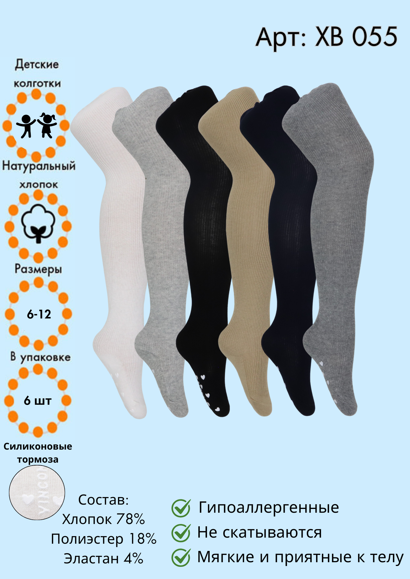 Хлопковые колготки с силиконовыми тормозами 6-12мес