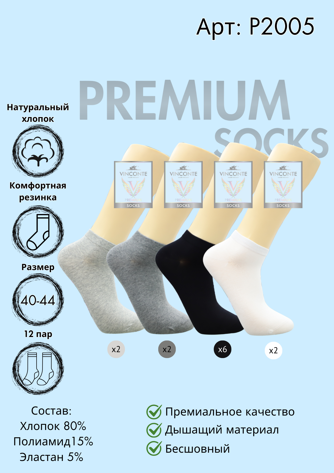 Носки премиум класса укороченные Vinconte 40-44